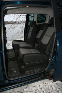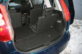 en la tercera fila de asientos, fueron honrados con sus propias ventanas grandes, a través de las cuales se pone conveniente para ver los alrededores. También es especialmente especialmente que los servicios del conductor son proporcionados por grandes espejos de autobuses retrovisores. Curiosamente, pero incluso en una versión de 7 plazas, el volumen del troncal le permite colocar varias bolsas de viaje o un carrito de compras completo desde el supermercado de acuerdo con los datos de la fábrica, su volumen es de solo 112 litros, pero es conveniente usar este espacio. Al mismo tiempo, dos pasajeros adultos pueden caber en los asientos traseros (siempre que el sofá promedio se instale en una posición intermedia, y no se desplaza hasta que se detenga). Es necesario decir que los asientos traseros se pueden doblar con una ligera mano de la mano con un piso y luego el volumen del tronco aumentará a 538 litros. La fila media de asientos se realiza muy inusualmente en realidad, estas son dos sillas separadas, pero en la parte posterior de una de ellas se fija el reposabrazos plegable, lo que puede servir de vuelta para el pasajero promedio. La almohada del jinete central tampoco es estática, puede ser reemplazada fácilmente por un pequeño cepillo para las cosas más pequeñas con los titulares de la Copa. También es correcto, apenas se supone que los cinco primeros se explotan a menudo con la carga completa, porque es una familia, no un automóvil comercial, y la capacidad de adaptar la cabina a sus necesidades es siempre agradable y en demanda. Pero lo que parecía no conveniente, por lo que es la imposibilidad de agregar completamente a la noche con un piso de asiento de la fila media. El salón oscuro parecía en primer lugar, pero las inserciones de plata en las sillas se diluyen, y, además, las promesas de tapicería oscura no son tan rápidas para oscurecerse tan brillantes, lo que es importante para una familia en la que varios niños pequeños crecen. Y los adultos tampoco están siempre limpios.