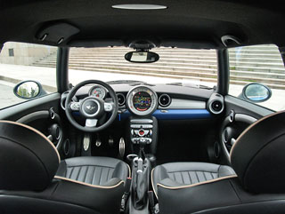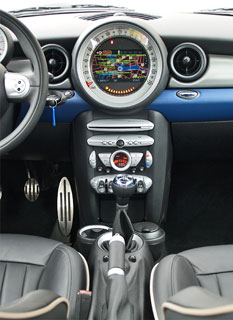 El resto del interior, como antes, deja una impresión muy optimista, es un verdadero reino de círculos y óvalos. Parece que le dan a los diseñadores la voluntad, habrían hecho el parabrisas, al igual que hicieron todos los espejos ovales, incluidos los de visores solares, superposiciones de pedal e insertos en las puertas. Simplemente no hay ángulos rectos en el mini salón. Quizás los partidarios de los autos clásicos parecen ser blasfemia, pero el mini diseño, tanto externo como interno, es muy impresionante. Al acercarme al auto, siempre quiero sonreír, y en la cabaña para ser una mina triste durante mucho tiempo: Cooper S definitivamente te hará sonreír desde tu estilo único o desde la dinámica. Quizás, según los resultados de la prueba, logré encontrar solo un inconveniente de Mini es su precio. El ESC probado con el sistema de navegación y otras opciones se estima en 33,900 euros (más de 45,000 dólares). Con el debido respeto y el amor por las mini coopes, no podría dar mucho dinero a un automóvil tan pequeño. A menos que como segundo automóvil, cuando el precio no importa, pero vale la pena preferir la versión abierta del Cooper S Cabrio para lograr la demolición completa de la cabeza. Por un precio similar, preferiría Alfa Romeo 159 2.2. Por supuesto, es inferior a Mini en dinámica, pero la diferencia no es tan grande y en las sensaciones de controlabilidad estos autos están cerca, pero Alpha Salon aún está más adaptado a la vida.