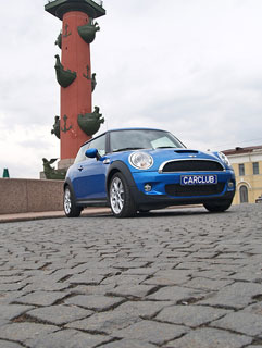 En una palabra, escupir todas las advertencias sobre la calidad de nuestras carreteras y su compatibilidad con ruedas de bajo perfil de 18 pulgadas y una suspensión deportiva de Eska, fui a la ciudad en la Neva. El beneficio del mini sistema de navegación rusificado encontró esta ciudad y me indicó la ruta. Entonces, el tanque completo del 95, los guantes de cuero desenfrenado para exprimir un pequeño volante deportivo con fuerza y \u200b\u200bir. Al mismo tiempo, en la salida de Moscú soy un reinicio de una computadora a bordo. Es interesante cómo Mini Cooper S se comportará en un largo viaje. Por supuesto, gracias a la suspensión deportiva y a los neumáticos duros de 18 pulgadas que se ejecutan en el volador, el conductor y sus manos están regularmente informados sobre todos los defectos de la carretera. Pero corriendo por delante, podemos decir que en el camino la suspensión no permitió un solo desglose, aunque en el BMW de Treshka, en el que fui a San Petersburgo el año pasado, los golpes duros fueron la norma. Sorprendentemente, Cooper no es particularmente agudo a la rutina, y el poderoso auto de tracción delantera no arranca el volante de las manos a la aceleración. En el mini movimiento, se percibe como un automóvil absolutamente duro, pero no en términos de suspensión, sino en parte del cuerpo. Cooper s sin demora reacciona a cualquier acción del conductor, ya sea el volante o el presionador de gas. La máquina es elástica, como una pelota, salta a través de cualquier bulto, pero por segundo no pierde el contacto con el camino.