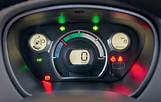 La clave de apagado del generador de ruido es un chip bastante inusual. El motor predeterminado se enciende cada vez solo para girar la llave en el bloqueo de encendido. Habiendo ahogado el cable y arrojándolo y sus pequeñas pertenencias en el tronco (por cierto, es pequeño, solo 227 litros, pero para un auto de la ciudad es suficiente), los cuatro están metidos en el salón. Sin embargo, por qué estamos rellenando, solo parece pequeño afuera, por dentro, en él, lo cual es sorprendente, bastante espacioso. En cualquier caso, cuatro pueden salir a la carretera, completamente un atabitado el uno por el otro. La llave ocupa la posición en el bloqueo de encendido, el giro, y la inscripción verde lista se ilumina en el escudo del instrumento, es decir, listo. Listo está listo. El selector de la elección de los modos de tráfico a la posición de accionamiento, y el automóvil se establece casi en silencio. Pero una fuente de sonido sigue siendo un generador de ruido que hace un sonido similar a lo que acompaña al movimiento de un tranvía, pero solo más tranquilo. Esto se hace para que los peatones puedan escuchar el enfoque del automóvil. Si todavía es necesario escabullirse, entonces este generador de ruido se puede apagar. La clave correspondiente en el panel de instrumentos está disponible.