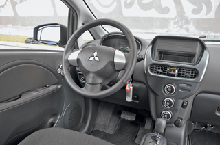 Todo es como siempre, solo las letras son un poco más. Llevados por el componente eléctrico, no prestamos atención a cómo se comporta I-Miev en el camino. Más precisamente, no nos llevó a esto. Un coche monta y monta. No es un estándar, por supuesto, pero no hay emociones negativas. El volante es ligero y, por lo tanto, vacío, por lo que más para la ciudad. Los frenos se están separando. La suspensión es dura, pero tolerante. Todo es como todos los que son comparables a I-MIEV en tamaño. Y las revelaciones aquí no tienen sentido esperar