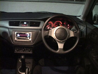 A pesar de que las dimensiones del cuerpo han aumentado, el aumento de peso fue de solo 40 kg para Lancer Evolution VII GSR, 60 kg para modificación. La capucha y las alas delanteras están hechas de aleaciones de aluminio. Además, se reduce el grosor de la hoja que va a la fabricación del techo. El grosor de las gafas de puerta (delantera y trasera) disminuyó en un 10%. El automóvil en el que hice un viaje de prueba está equipado con opciones como enfriar el sistema de frenos (13,000 yenes, o alrededor de $ 124) y el sistema de audio 2Din (67,000 yenes, o alrededor de $ 638).
