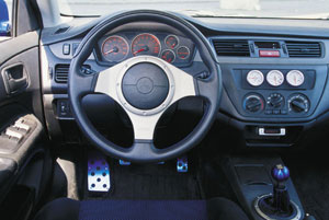 Suspensión y frenos - sin cambios. Caucho - 10 mm más ancho. El motor es el mismo (4G63), pero con árboles de levas livianos. El poder es el mismo: 280 hp. (ya no según las leyes japonesas), el torque ha crecido un poco. En la caja, se cambian las velocidades de marcha más bajas y más altas. El diferencial central (ACD) en EVO VII se ha vuelto activo: el grado de sus cambios de bloqueo dependiendo de las indicaciones de acelerómetros y varios otros sensores.