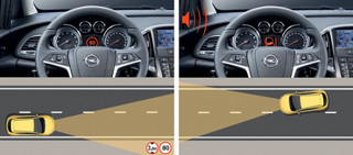 Y también sobre el conjunto de funciones disponibles para el nuevo Astra GTC. Estos son sistemas de asistencia para el conductor, cuya base es la cámara frontal Opel Eye modernizada. Entre ellos, el sistema de advertencia sobre la salida de la franja ocupada, fijando la intersección de la línea de marcado de la carretera y se incluye a una velocidad de más de 55 km/h, así como el sistema de reconocimiento de letreros de carretera, que opera en Un radio de hasta 60 m. Además, el uso de la nueva cámara Opel Eye permitió mejorar el sistema adaptativo de la iluminación de la cabeza, complementándolo con un sistema intelectual para evaluar la intensidad del flujo de luz. También hay un sistema para determinar la distancia por delante del próximo automóvil.