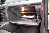 La luz de fondo conveniente ahora no es solo en la consola del techo, sino también en los espejos de la opción ($ 65). El mismo costo incluye un relé que protege la batería de la categoría