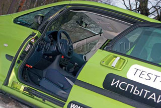 Los amortiguadores duros y los resortes que estaban cubiertos con gruesos estabilizadores de la estabilidad pura jugaron un papel aquí. Es cierto que también hay desventajas: casi se arrastraba a través de esos policías mentirosos. Valió la pena aumentar la velocidad ligeramente, y los pasajeros recibieron un golpe característico a los quintos puntos. Pero la suavidad del curso no se vio afectada: no se quejaron de una incomodidad que iba incluso en un camino country congelado. Simplemente, esto está en la sangre de la sangre. Como el deseo de destacar. A lo largo de la prueba, fuimos perseguidos por las opiniones interesadas de otros participantes en el movimiento.