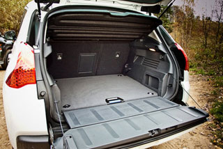 El tronco debe tenerse en cuenta especialmente: en primer lugar, incluso 432 litros son bastante voluminosos con espaldas elevadas. En segundo lugar, si baja las espaldas, puede hacerlo desde la calle, tirando de las palancas en las paredes laterales del departamento, el volumen crecerá a 1,241 litros. Y después de elevar el piso, puede liberar un poco más de espacio (el piso extraíble se puede levantar y más alto, de repente tendrá que ocultar algo en el subsuelo) Debajo del capó de nuestra versión había un par superior: un motor turbo de 156 caballos de fuerza de 1.6 litros y una máquina de 6 velocidades. El tándem es notable, al menos, incluso con una conducción rápida debido a una buena tracción en la parte inferior, la caja se permite cambiar la parte superior frecuente y usar velocidades principalmente bajas del motor. En la cabina, incluso a 120 km/h, tan silenciosamente que se escucha claramente el susurro de los neumáticos en asfalto.