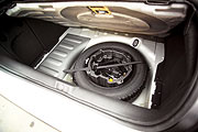 Una canasta con una herramienta que encaja dentro de la rueda de repuesto