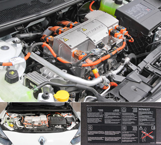La batería es de litio-iónica, se encuentra en la parte posterior verticalmente en el bastidor auxiliar de la caja, lo que la protege durante el golpe. La capacidad de la batería es de 22 kWh, voltaje de funcionamiento 400 voltios. En el accidente, la batería se apaga automáticamente. ¡Momento interesante! Renault, para reducir el costo de sus vehículos eléctricos, los vende sin batería. Es decir, la batería, por supuesto, está en ellos, pero la compañía la arriende a un costo de aproximadamente 70-80 euros por mes. Resulta que el rescate de la batería se lleva a cabo en cuotas. Por cierto, si decide vender el automóvil después de un uso corto, el contrato de alquiler de baterías se renova al nuevo propietario. Marketing Reglas del mundo