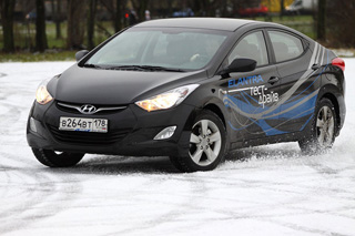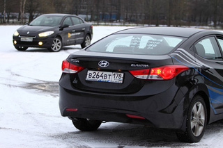 ESP Flyens equipados, con todos sus intentos de poder resistidos de conducir sobre él en deslizamiento. El sistema de estabilización desconocido fue estrangulado por el motor Renault en la más mínima demolición del sedán francés de la trayectoria, mientras que el Elantra, desprovisto del collar de seguridad, le da al conductor la oportunidad de introducir y quitar el automóvil fuera de la deriva.