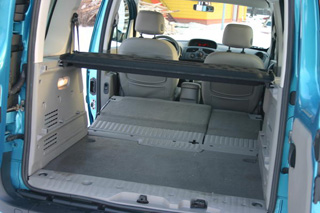 En el salón de Kangoo, incluso el espejo en la visera sobre el asiento del conductor se sacrificó a favor de la practicidad. Hay un organizador para transmitir el territorio de varias organizaciones, tarjetas de visita, abogado, etc. Salon Kanga recuerda a un coupé en un tren: hay un asiento delantero y trasero de los estantes más bajos, los estantes superiores son nichos enormes debajo del techo, donde Puede llevar media docena o, por ejemplo, libros, fondos de pantalla, DVD, teléfonos móviles (la zona está fuera de vista de los intrusos) y el compartimiento de equipaje de dos niveles, que está separado por un estante en la parte inferior inferior sin fondo y la parte superior trascendental. Además, este auto también tiene el llamado. Tronco postal del coche en el techo. Teniendo en cuenta el impresionante área del techo, aquí puede transportar, tal vez, todo lo que necesita en la vida cotidiana: refrigerador, bote inflable, bicicletas, cama, etc.
