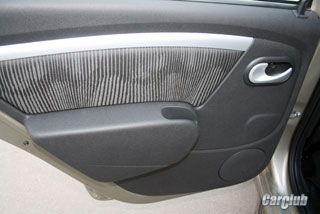 Las manos internas de las puertas delanteras, afortunadamente, son de pleno derecho y se pintan con éxito en contraste con el color común del salón Cabrier. Pero en la parte trasera famosas recovecas incómodas. Y la misma ubicación incómoda de las ventanas de las ventanas en el medio, que en frente, eso está detrás.