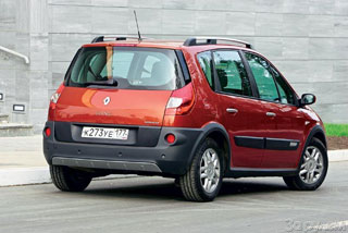 Renault Scenic Conquest cautiva con capacidades avanzadas. La ausencia de toda la tracción en la rueda no es un defecto, sino la capacidad de ahorrar en una opción de bajo voltaje.