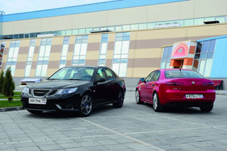 Creo que nadie tenía una pregunta, y ¿por qué, de hecho, el caliente Alpha de la belleza del sur de repente, gracias a la revista, encontró a un competidor en la persona de un frío frío llamado Saab? El punto aquí, por supuesto, no está en la competencia directa de estos modelos en nuestro mercado. Un papel importante es desempeñado por antecedentes ideológicos. Las ventas de ambas marcas están lejos de vencer los registros, sino incluso para establecerlos. Y si Saab, después de volver a poner en reposo, 9-3 casos parecen tener más o menos tapizados, entonces Alpha en el segundo año de ventas en Rusia solo continúa perdiendo clientes potenciales. Sin embargo, las filas de los fanáticos ardientes de estas marcas no crecen. Fans, generalmente son ciertos. Saabers y Alfists son increíbles junto con esqueletos fragmentarios, pero al mismo tiempo llevan la doctrina de que son elegidos en algún lugar en las entrañas de sus vastas almas. Está claro que desde la ventana del notorio Toyota plateado, tal el elección parece una locura, pero sin embargo: tanto para Saabu como Alpha, muchos respiran de manera muy desigual. Hay muchos fanáticos y, ocultos y latentes. ¿Cómo no puedo comparar las dos versiones principales del segmento D de fabricantes extraordinarios, ya que tal oportunidad ha presentado?