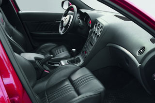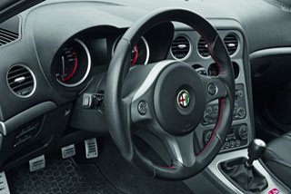 Rosso Color es, por supuesto, el mejor que se puede ofrecer para el Alfa Romeo cargado. A pesar de todas las fortalezas de la apariencia de Saab, daremos el campeonato para el exterior sin dudarlo en la escuela de diseño italiano. Tiene más expresión, y la apariencia sorprendente se logró no debido a la abundancia de detalles de fraude, sino a la forma extremadamente armoniosa del cuerpo, que parece irradiar energía. Francamente, esperábamos más de la colección del Salón 9-3, pero no podía presentar una sorpresa. Aquí todo es casi como en el Aero habitual, y solo los insertos de carbono decorativos y una inscripción nominal en la tira de carbono en el lado derecho del panel frontal hacen la diversidad. A pesar de la orientación deportiva del automóvil y la caja de cambios mecánica, al tacómetro todavía se le asigna el papel del segundo plan, es mucho más pequeño que el velocímetro y se encuentra a un lado. El volante también es como en Aero (y Cadillac BLS por cierto). Los asientos ya familiares, por supuesto, con soporte lateral, pero podrían arreglar el cuerpo un poco mejor. En general, después de visitar el Salón Saab, queda un sentimiento de insatisfacción. Es bueno que haya un alfa cercano.