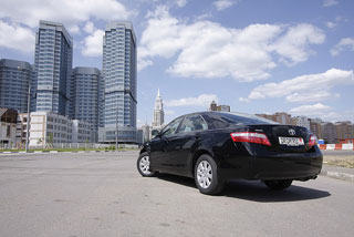 Ahora está claro por qué las personas con tal apetito consumen este plato del menú Toyota, ¡la máquina tiene una energía especial y establece al conductor de una manera exitosa! Camry tiene un excelente aislamiento de sonido, suavidad fría. Y la potencia del motor de 2.4 litros, como resultó, es suficiente. El sedán negro gana alegremente la velocidad y le permite sentirse en la corriente, si no por el presidente, entonces el oficial de más alto nivel seguro. Pero los pensamientos sobre V6 no dejan sus cabezas ... Camry es adictivo. No puede ser entendida en un día, para sentirse en dos. Pero si tuvo la oportunidad de viajar durante al menos una semana categóricamente, no quiere separarse. Es difícil dejar un pequeño mundo cómodo, que, además, todos respetan en el camino. Pero tuve que hacerlo.