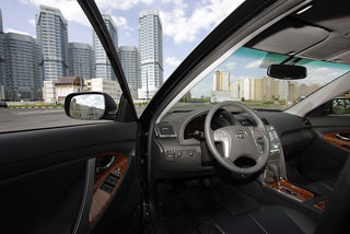 Afortunadamente, el castillo fue agradable. Nuevamente me encontré en el interior habitual, que esta vez se puso en una cáscara plateada (como el negro, este es el mejor color para Camry). ¡Hola, Toyota ruso!