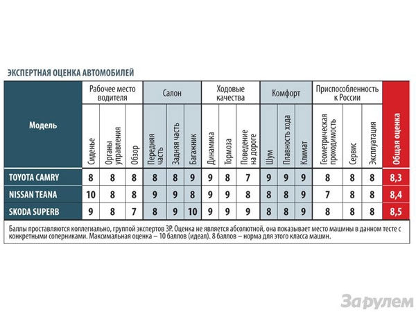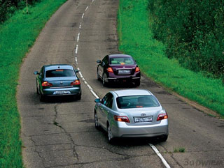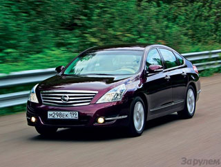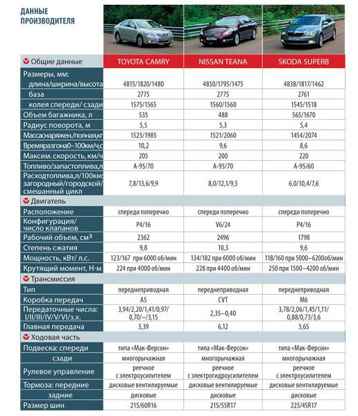 ¡Viejos nombres, autos nuevos! ¿Está el éxito de ventas del mercado ruso Toyota-Kamri está listo para defender posiciones avanzadas en la lucha contra los últimos Nissan-Thean y Skoda-Superb? Mikhail Gzovsky estaba buscando una respuesta en las carreteras del campo de entrenamiento. Foto: Konstantin Yakubov. Nissan Teana 2.5 L, 182 hp, un variador no disponible, equipo de lujo, 1 033 100 rublos.