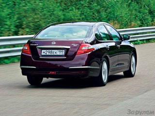 Hoy ya no ordenará al thean con un cuatro de 2 litros, claramente débil para un automóvil pesado. Debajo del capó, uno de los dos motores de 6 cilindros. Con una masa equipada más pequeña y cultivada por 9 hp. La potencia del sedán del motor de 2.5 litros parecía moverse del grupo de peso pesado al medio. El conjunto de velocidad se percibe de una manera completamente diferente y gracias a la transmisión: el lugar de asalto de 4 velocidades fue tomado por el variador Xtronic y la última generación, ahorrando combustible y tiempo al cambiar. Al conducir, el variador copia la máquina, permitiendo que la flecha del tacómetro termine a 3500 rpm y luego salga del paso virtual arriba. Pero vale la pena presionar el gas hacia el piso, ya que el motor se eleva a 6000 rpm y se cuelga de ellos. Es cierto que en la pista es ruidoso.