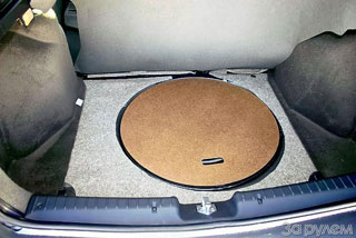 compartimiento. Reemplace las bombillas en las luces traseras simplemente, se retiró del velcro, capturó el borde de la tapicería, y el acceso está abierto. La pista de repuesto se encuentra debajo del piso boca abajo, en él, en él, un gato y una llave de globo. Desde arriba, la rueda está cubierta con orgángota rígido, y el piso del tronco es suave. Se puede solucionar la carga: para esto hay soportes en el piso y en la parte inferior del asiento trasero hacia atrás. Los ojos de remolque sobresalen de debajo de los parachoques, quizás no estéticamente estéticamente, pero es conveniente y práctico.