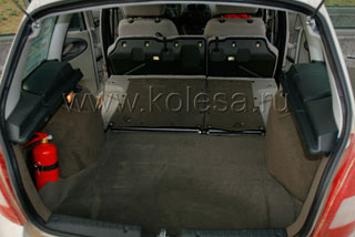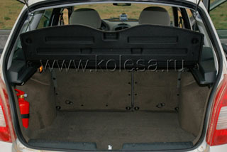 La capacidad de descomponer la silla trasera en la proporción de 1: 3 o 2: 3 permite que los pasajeros se sientan fácilmente en el vecindario. La versatilidad de la máquina está respaldada por un techo alto: no surgirá problemas de carga / descarga. Pero no es necesario detectar: \u200b\u200bdebido al tamaño guardado del automóvil, el compartimiento de carga no se hizo mucho mayor. En el estado habitual de 350, con una parte trasera desplegada cerca de 650 litros. Además, la parte posterior del sofá se puede distribuir en la proporción de 40:60 y le permite lograr una plataforma prácticamente incluso.