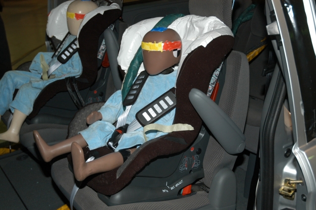 Lors de la simulation d'une grève latérale d'un pilier, des coussins gonflables latéraux ne fonctionnent pas comme il devrait être serré entre une tête de mannequin et racks centraux.Sécurité des piétons: