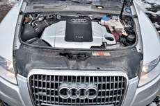 Un certain nombre de moteurs pour l'Audi A6 Allroad Quattro sont représentés par deux unités d'essence à essence d'un FSI de 3,2 et 4,2 litres et deux turbodiessels avec un volume de 2,7 litres de 180 chevaux et 3 L 233 ch. Il s'agit de la machine diesel à trois litres en tant qu'économique assez puissante et en même temps plutôt que celles qui sont équipées de moteurs à essence que nous connaîtrons dans toutes les conditions routières possibles. Au tour de la clé dans le verrouillage d'allumage (en passant, il est possible de le stocker dans votre poche, et pour démarrer la voiture, utilisez le bouton de la console centrale), le moteur répond assez fort pour une voiture de la voiture de Cette classe et peu comme le diesel d'une voix haute. Des vibrations mineures sont transmises au levier de transmission automatique, ce qui provoque d'abord la perplexité. Mais après quelques minutes, vous cessez de les remarquer, d'autant plus que avec une augmentation des révolutions, ils disparaissent.