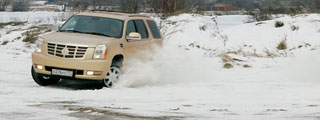Avec une accélération agressive du rugissement d'un huit à six, les cônes tombent des arbres de Noël et de la dispersion de la dispersion des chats. Il suffit d'observer la réaction des passants - pour comprendre: personne n'est indifférent à Escalade! Mais nous devons tenir compte du fait que notre Cadillac n'était pas de la couleur la plus avantageuse, et donc semblait faible dans le fond des adversaires. Il y aurait une Toyota et Infiniti blancs ou de neige mourraient à l'ombre de son bar chic!