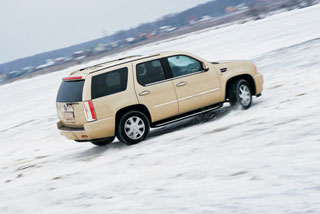 La suspension ne se livre pas au confort, les policiers mensonges, les grandes coutures et les nids de poule profonds sont trop grossiers. Sur le béton et la pierre écrasée, Cadillac ne fixe pas non plus de records, mais cette doublure, cassée, comme après le bombardement, est parfaitement avalée. Il n'est pas difficile d'assiéger Escalade à grande vitesse, mais le contenu de l'information de la pédale de frein ne suffit pas. La direction n'apporte pas des surprises d'escalade spéciales sur des revêtements glissants se comportent comme une vache sur la glace. Avec une certaine dextérité, vous pouvez vous rapprocher en toute sécurité à la limite des capacités de l'adhésion des pneus, mais le destin
