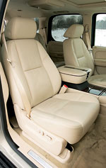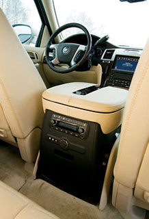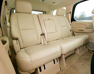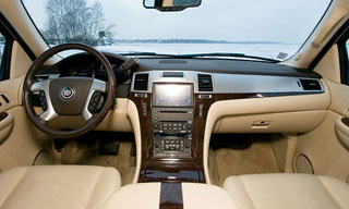 La dépendance des couleurs s'applique également à l'intérieur. La peau lumineuse est presque contre-indiquée pour l'Américain: sa qualité est pire que celle des voitures japonaises, en particulier les voitures européennes. Les inserts en bois ressemblent à un faux asiatique plastique. Ceci malgré le fait que Cadillac ne se permet pas de telles libertés même sur la berline BLS la plus bon marché! Cependant, malgré toutes ces critiques, entrant dans le salon Escalade, vous êtes très heureux. C'est vraiment confortable ici.