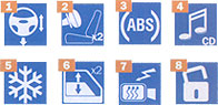 1. Un volant réglable avec un amplificateur. 2. oreillers de sécurité. 3. Le système de blocage final des freins. 4. CD Magnetol. 5. Climatisation. 6. fenêtres électriques. 7. Miroirs chauffants à entraînement électrique. 8. Château central. 9. Lumides antibrouillard.