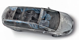 Comme Chrysler, Espace est l'un des fondateurs du segment. Dans la voiture française, l'influence de l'École américaine et européenne de construction de mini-wenes est perceptible: d'une part, les portes se balancent, d'autre part, ils vendent des voitures avec une base courte et longue. Le coût du Français est supérieur à celui de la galaxie, mais inférieur à celui de Chrysler.