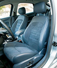 Le conducteur est équipé d'un homme européen: cousu avec des sièges en cuir, scellant et dense, et la plantation implique un ton et une conduite. Le contenu de la barbe est magnifiquement élaboré, mais pas trop fonctionnel: les boutons de climatisation sont signés finement, et le contrôle du son directement à la radio est gênant. Lorsque vous regardez Ford Mondeo de l'intérieur, la route est perçue comme un divertissement: vous voulez des actions et des manœuvres. Dans le mouvement sur la taille de la voiture, rien ne ressemble: les réactions au volant sont légères et sans ambiguïté, les freins sont puissants et leur entraînement est dense et précis. Cependant, plus important encore, il est plus important que du point de vue pratique du châssis soit également excellent: les otages de la netteté de la contrôlabilité et des réponses instantanées de la voiture aux actions du conducteur ne sont pas devenues une décision ou une intensité d'énergie de suspensions.