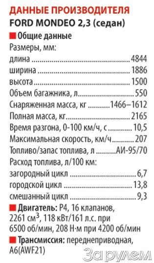 Ford Mondeo avec un moteur de 2,3 litres et automatiquement est moins dynamique et économique qu'une version de 2 litres avec mécanique. Le principal avantage est la commodité de la conduite.