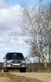En général, lorsque la force de restreindre l'action inverse sur la RAM ne reste pas, appuyez sur la touche, éteignant l'essieu avant et pose doucement le besoin de désir, tournant. L'angle d'auteur de rotation des roues de ramassage, le volant de puissance hydraulique productif et un grand rapport engrenage dans le mécanisme avaient été soudainement. Lorsqu'il allume une section plate, le Ranger n'est pas tant d'espace de 12,6 mètres. Je pars pour l'asphalte traduire l'esprit. Eh bien, Ranger justifie entièrement son nom, qui est traduit de l'anglais comme un tramp ou un vagabond. S'il y avait des pneus dents normaux sur la voiture, je suis sûr que je serais devenu le roi de la montagne sans effort supplémentaire.