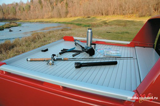 combinaison de la peau et de l'Alcantara et décorée de broderies. Il a même des nattes d'entreprise, avec un fardeau orange. Sur les ailes frontales, superpositions décoratives de l'apport de la Air. Pare-chocs avant design spécial. Installation aérodynamique en plastique à la jonction de la cabine et du corps. Mais les principaux volets à rouleaux élégants de l'habitacle de fermeture principale, sur lequel il est tellement pratique de décomposer le tacle de l'installation, de mettre Thermos avec du café et même du brûleur avec le kittelet. Néanmoins, la canopa HardTop en plastique semble trop utilitaire, la couverture plate est inconfortable, puis ce qui est nécessaire. UN POUR TOUS