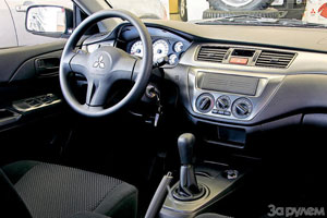 Lancer Salon évoque des souvenirs de machines à disque à droite utilisée. Design non coréré, du plastique sombre, le seul point léger est le tableau de bord. Plus vous regardez de plus près, plus vous êtes convaincu: ici, la fonctionnalité a complètement gagné la conception. Prenez les commandes: Trois petites poignées de climatisation avec des désignations liées à des lieux, les interrupteurs de volants sont simples et une sorte de levier maladroit. Mais les détails sont harmonisés soigneusement et soigneusement, les lacunes sont petites, il n'y a nulle part pour régler les grillons. Il rappelle le vieux japonais et un oreiller de siège court. Bien que sinon la chaise soit normale: le brochet et un corps massif prendront tout aussi hospitalier. Le réglage longitudinal est suffisant pour un conducteur dégingandé. Mais le volant ne peut être configuré qu'en hauteur. Presque tous les conducteurs devront le soulever, sinon il se couche sur ses genoux, même lorsque l'oreiller du siège est abaissé à l'arrêt.