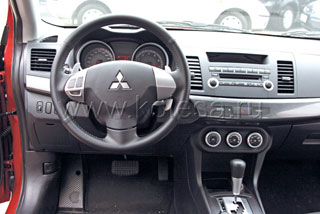 Le tableau de bord est clairement visible entre les aiguilles de tricot de direction, mais les indications de l'affichage (en haut de la console centrale) ne sont visibles que dans l'obscurité. Note au tuner: sur lui pour accrocher une visière Les sièges de Lancer sont durs, mais le dos après une pâte à deux heures a répondu avec un silence reconnaissant. Mais le soutien latéral ne suffit pas: dans des virages particulièrement raides, j'ai dû garder le volant.