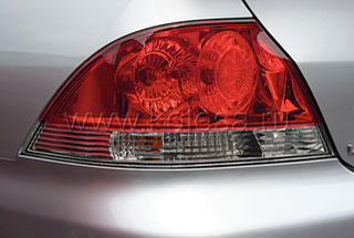 Les lumières arrière en taille et en biais répètent la conception des avantages avant, et à travers leurs lunettes transparentes, des tours de lumières multi-colorants sont visibles.