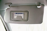 Les miroirs cosmétiques dans les deux visières de crème solaire sont recouverts de couvercles de papiers