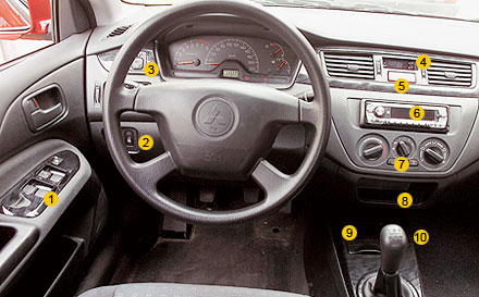 Nous n'avons pas d'airbags avant et de fenêtre dans les Lancers vendus. Cependant, comme dans la plupart des camarades de classe japonais. Le distributeur russe Mitsubishi croit à juste titre que l'acheteur de masse n'est pas encore prêt à trop payer pour des oreillers supplémentaires dans la classe de golf.
