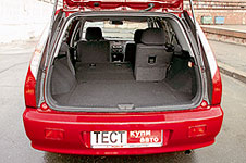 Dans le break, il y a un cercueil plus grand. De plus, grâce à la cinquième porte presque verticale, le volume interne de la voiture est utilisé au maximum. Le schéma de transformation du canapé est le même que dans la berline, seuls les dos séparés sont pliés et l'oreiller reste en place. Pour cette raison, le sol ne fonctionne pas parfaitement, mais si la chaise avant droite est amenée en position de la chambre, une plate-forme de chargement de la porte arrière à une torpille est formée. De plus, dans le coffre du wagon de la station, il y a un gunner de rosette de 12 volts pour se connecter, par exemple, un réfrigérateur de voiture.
