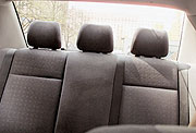 À l'intérieur de la nouveauté n'est pas non plus ressentie. Le design d'intérieur est trivial. Et les larges dos rectangulaires des sièges avant, je me souviens, étaient sur des voitures japonaises au début des années 90. Mais si vous jetez les prétentions à l'originalité, tout est très bon. Les portes sont larges, la cabine est assez spacieuse. Assis à l'arrière, il y a suffisamment d'espace dans les jambes et au-dessus de la tête. Les chaises ne sont pas recouvertes de tissu, comme dans de nombreux camarades de classe budgétaires, mais en velours. Les parties supérieures de la torpille et le rembourrage des portes sont confrontées au plastique souple.