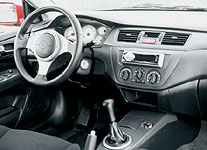 Malgré tout son aspect pratique, le Salon du transporteur ressemblait à un designer sans âme à partir d'instruments, de leviers et de sièges. Dans Lancer, j'ai immédiatement ressenti une approche de designer. Une visière de visière élégante crée l'impression d'élégance et de légèreté, presque de l'air et des inserts sous un arbre noir donne à l'intérieur d'une voiture peu coûteuse un charme modeste. Dans la performance d'un sport, qui sera combiné avec le moteur le plus puissant, Lancer se transforme complètement en évolutions.