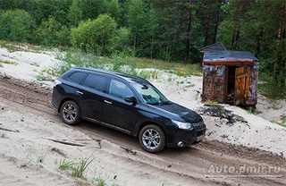 Après un tel comportement sur le mauvais, mais l'asphalte d'Outlander sur le tout-terrain n'avait toujours rien à attendre. Nominalement, seule cette nouvelle génération a reçu le statut officiel d'un SUV, seulement un petit changement dans l'angle d'entrée. Mais, il s'est avéré que toutes sortes de hauts sont vraiment son élément. C'est juste un mouvement actif dans les chaudières russes en mode de verrouillage 4 roues motrices n'implique pas d'économie de carburant. Oui, et j'ai complètement oublié d'ajouter - le sable s'est avéré être une véritable destruction pour Outlander. Les deux équipes qui ont décidé de tester les voitures dans les dunes, elles y ont été atterri en toute sécurité. Pour tout cela, les sables, comme vous le savez, n'étaient pas du tout instables. Mais de nombreux Fords et fossés surmontent sur