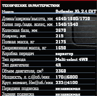 J'avoue que XL est l'une de mes voitures préférées dans cette classe. Une fois que j'ai eu la chance de le monter dans une zone croisée pendant trois jours consécutifs, et des souvenirs chaleureux de ce voyage étaient encore en vie. Certes, c'était un Outlander à trois litres. Et aujourd'hui, je vous rappelle, nous avons un moteur à essence avec un volume de travail de 2,4 litres le résultat d'un projet conjoint du moteur mondial de Mitsubishi Motors Corporation, DaimlerChrysler et Hyundai