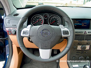 Après avoir voyagé dans la version Astra Diesel un peu plus de cent kilomètres, j'ai déménagé dans une voiture avec un moteur à essence Ecotec Twinport de 1,6 litre et une transmission Easytronic. La technologie Twinport rusée permet d'utiliser la valve de papillon réglable dans chacun des deux canaux d'entrée du cylindre pour atteindre la qualité optimale du mélange combustible, ce qui entraîne une augmentation de la puissance de 3% et une diminution de la consommation de carburant de 10%. La consommation moyenne d'essence déclarée par le fabricant pour la version avec un tel moteur est de 6,6 litres pour 100 km dans le cycle de mouvement mixte. Cette version a l'un des ensembles les plus riches parmi les voitures prévues pour le test. Le salon est fini avec une peau légère agréable, et tous les charmes du système adaptatif IDS complètent la transmission Easytronic à 5 bandes. En mode sport, une telle transmission vous permet d'utiliser plus largement les vitesses du moteur élevées, en outre, la transmission ne peut être commandée par les touches sur le volant, cependant, qu'avec une augmentation. La fonction HSA a été ajoutée aux possibilités de la transmission (assistance lorsqu'elle est touchée depuis le lieu de levée), ce qui empêche la voiture et donne au conducteur une seconde et demie pour se déplacer.