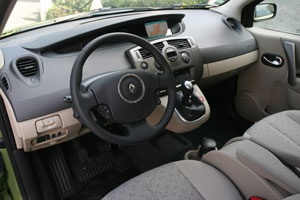 Scenic II est vendu avec un moteur de 1,6 et 2 litres. Quatre configurations: Authentique (à partir de 21549 $), Expression (à partir de 22649 $), privilège (à partir de 23949 $), latitude (à partir de 23149 $). Authentique avec un moteur à 1,6 litre est équipé d'une transmission manuelle à cinq vitesse, ABS, EBV, AFU, une puissance électrique, un ordinateur sur planche, des fenêtres avant, des disques en acier R15. L'expression a ajouté une laveuse de phares, un capteur de lumière, un capteur de pluie, un brouillard, des miroirs électriques et du chauffage, ainsi qu'une carte à puce qui contrôle le comité exécutif central, le début du moteur et du verre. Le privilège apparaît la climatisation et les disques R16. Latitude a un toit panoramique, un frein de stationnement automatique, une radio, un régulateur de vitesse, un toit teinté, une alarme.