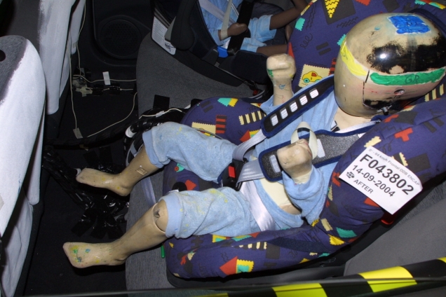 ტესტი გამოიყენება რეკომენდირებული მწარმოებლის მიერ Britax Romer Duo Plus და Britax Romer Babysafe Plus 3 და 1.5 ზაფხულში mannequins, შესაბამისად. სკამები დამონტაჟდა სახე ნაბიჯია. Duo Plus დაფიქსირდა ISOFIX მთა, და ბავშვის უსაფრთხო seat ქამრები. ორივე mannequins კარგად იყო დაცული, მაგრამ დატვირთვის მკერდზე ძველი აღიარებულ იქნა როგორც ძალიან მაღალი შუბლის გავლენა. წინა მგზავრის დამცავ შეიძლება გამორთულია ხელით, რაც დასტურდება ხანმოკლე ხატი და ტექსტი მითითება მგზავრის მხარეს წინა პანელზე. Durable გაფრთხილება დაუშვებლობის შესახებ მონტაჟი ბავშვთა თავმჯდომარე "წინააღმდეგ მიმართულებით მოძრაობა" მგზავრის სავარძლის აქტიური უსაფრთხოების ბალიში განლაგებულია ორივე მხარეს sunscreen visor.გვერდითი strike: