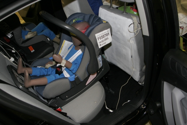 წინა აირბაგი სამგზავრო შეიძლება გამორთულია გამოყენებით შეცვლა პრესაში ყუთი. Nearby იყო გაფრთხილება და ბალიში სტატუსი ნაჩვენები ცენტრში კონსოლი ეკრანზე. უფროსი შვილი იყო განთავსებული თავმჯდომარე VW Britax Romer Duo Plus "მიმართულებით მოძრაობა", დაცული ერთად ISOFIX და უსაფრთხოების straps. შუბლის გავლენა, სენსორები მისი მკერდზე დაფიქსირდა დიდი დატვირთვა. ახალგაზრდა სამგზავრო იყო ჩადებული თავმჯდომარე VW Britax Romer Baby Safe Plus, დაყენებული "წინააღმდეგ მიმართულებით მოძრაობა" გამოყენებით ISOFIX და გარე მხარდაჭერა. მისი დაცვის იყო კარგი და სრული.Side strike: